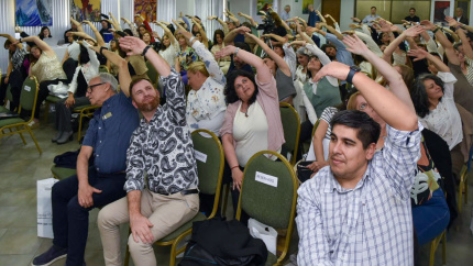 Después llegó un momento distinto: un espacio de relajación y conexión personal, abordado desde el yoga para el bienestar emocional. Analía Carpintero invitó a la audiencia a reflexionar sobre el ejercicio cotidiano de la profesión, en el que se convive con múltiples roles que, a veces, se superponen, intentando sostener el equilibrio entre las distintas facetas de la vida.
