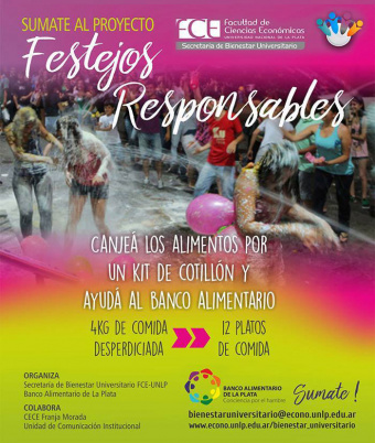 Cuando el Banco Alimentario de La Plata calculó que en una recibida promedio se tiraban alimentos suficientes como para cocinar 12 platos de comida, en la Facultad de Ciencias Económicas de la UNLP no dudaron un segundo: había que impulsar un proyecto que concientice a la comunidad educativa de esa casa de estudios para generar el cambio de perspectiva. La solidaridad y el cuidado del medioambiente podían ir de la mano si los alimentos que en cada recibida se desperdiciaban se reemplazaban por kits equipados con espuma, papel picado y polvos de colores.