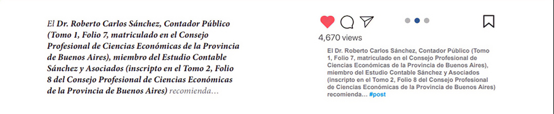 Como la ética indica, cada aparición del profesional en publicidades, publicaciones en redes sociales o medios de comunicación deberá ser acompañada con sus datos de matrícula. “Esta iniciativa pretende preservar a la sociedad de engaños y falsedades. Aquellos ofrecimientos carentes de estos datos, se presume que no provienen de profesionales matriculados, o siquiera de graduados, y esto da lugar a posibles denuncias por parte de quienes cumplen con todos los preceptos éticos y de aquellos integrantes de la sociedad que pueden verse afectados”, continúa la Dra. Accifonte, a sabiendas de los inconvenientes que puede generar el asesoramiento por parte de un profesional sin matrícula.